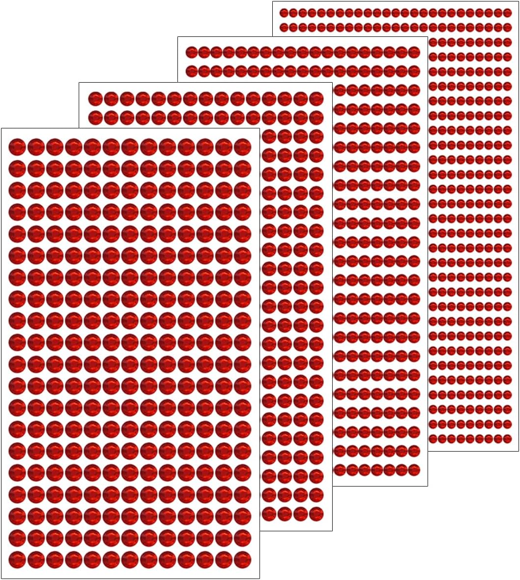 1799 Pcs 4 Sheets Rhinestone Stickers 3/4/5/6 mm Self Adhesive Rhinestones Gems for Face Eyes Makeup Hair Body (Red-3/4/5/6mm)