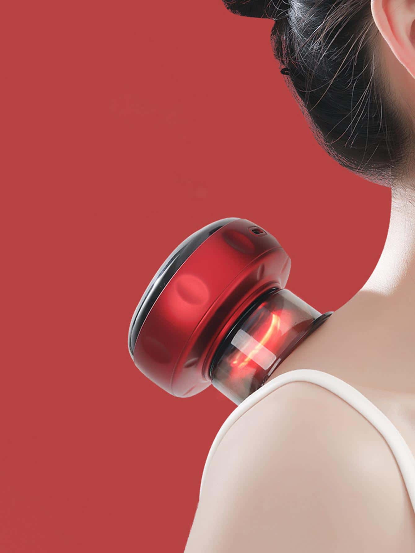 Modern Red USB Rechargeable Cupping Instrument for Home Therapy###Experience the benefits of cupping therapy in the comfort of your own home with this modern red scraping instrument. Made from durable ABS material, this cupping instrument is rechargeable and comes with batteries included. With CE certification, it's a safe and effective way to relieve muscle tension and improve circulation.