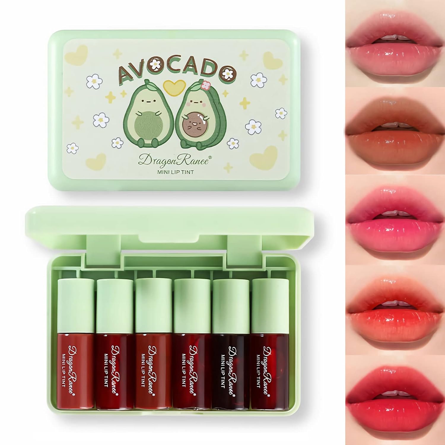 6 Colors Lip Tint Stain Set, Korean Lip Gloss Lip Tint Stain Plumping Mini Liquid Lipstick, Multi-use Lip and Cheek Tint Gloss, Long lasting Non-Stick Cup Waterproof High Pigment Lip Tint Makeup