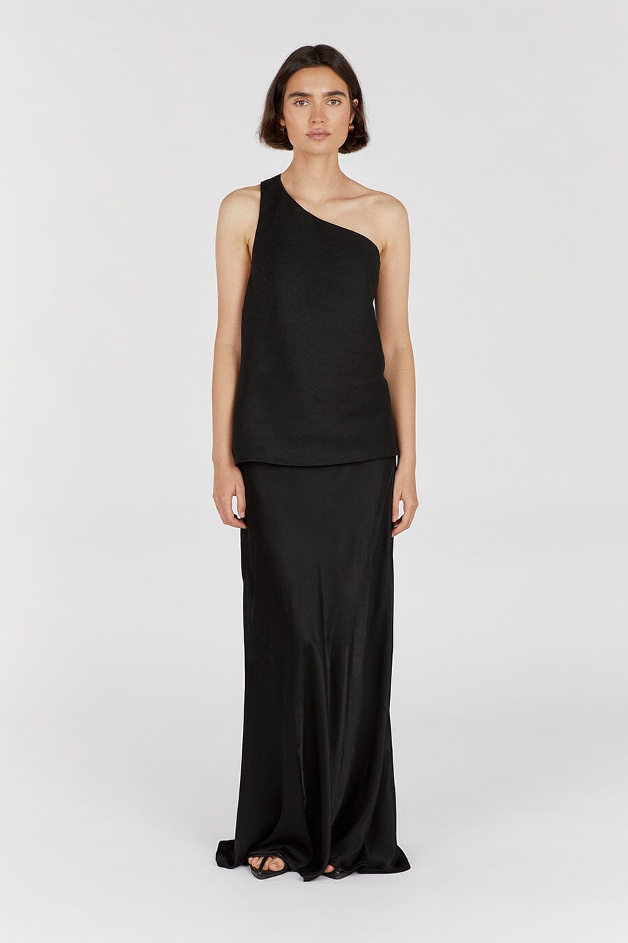 ADDISON BLACK LINEN ASYMMETRIC TOP