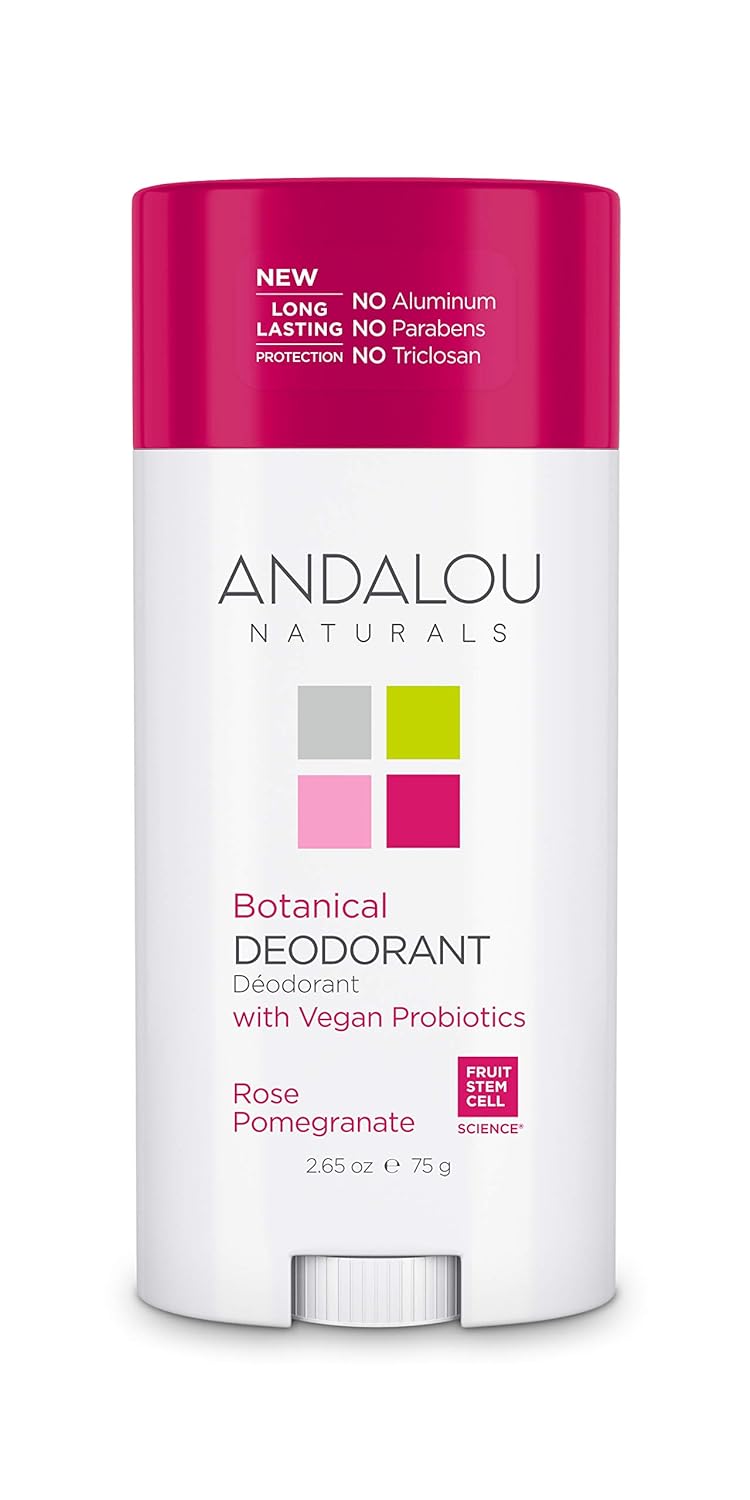 Natural Deodorant: Andalou Naturals long-lasting, solid natural botanical deodorants effectively neutralize odor with super antioxidants, skin soothing plant oils, and vegan probiotics
