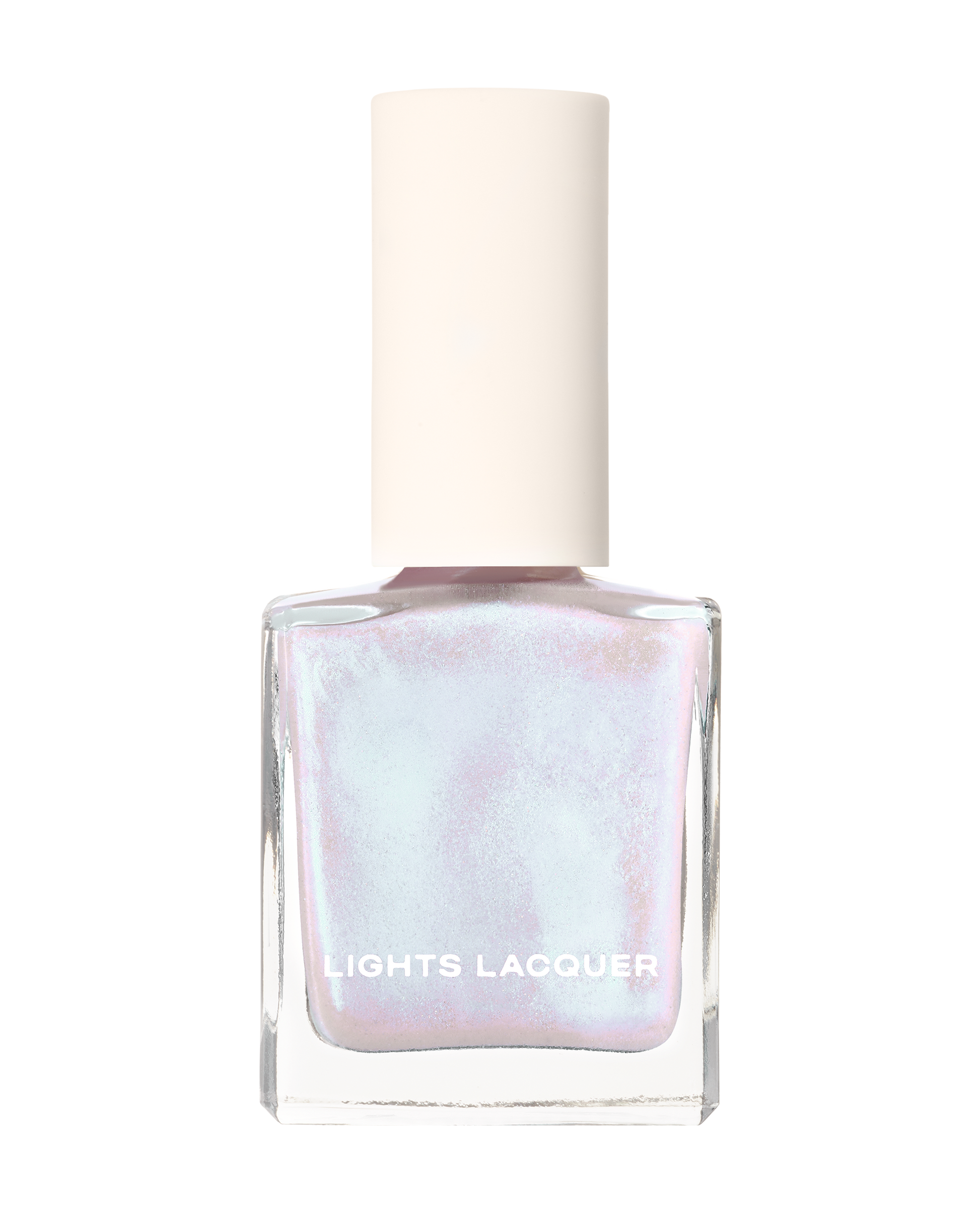 A petal pink opalescent polish with a blue shift and a shimmer finish.