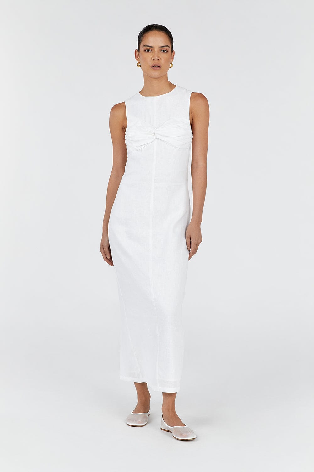 BERTIE WHITE LINEN MIDI DRESS