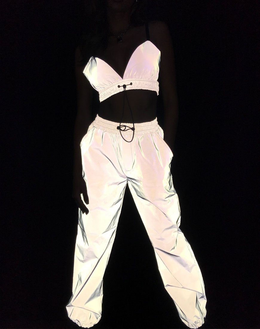 We are living for the reflective trend and now you can live in it! The Beval Jogger in reflective silver feature a baggy cargo trouser fit with cuffed ankles making them the perfect companion for a rave or chilling at home being extra AF!