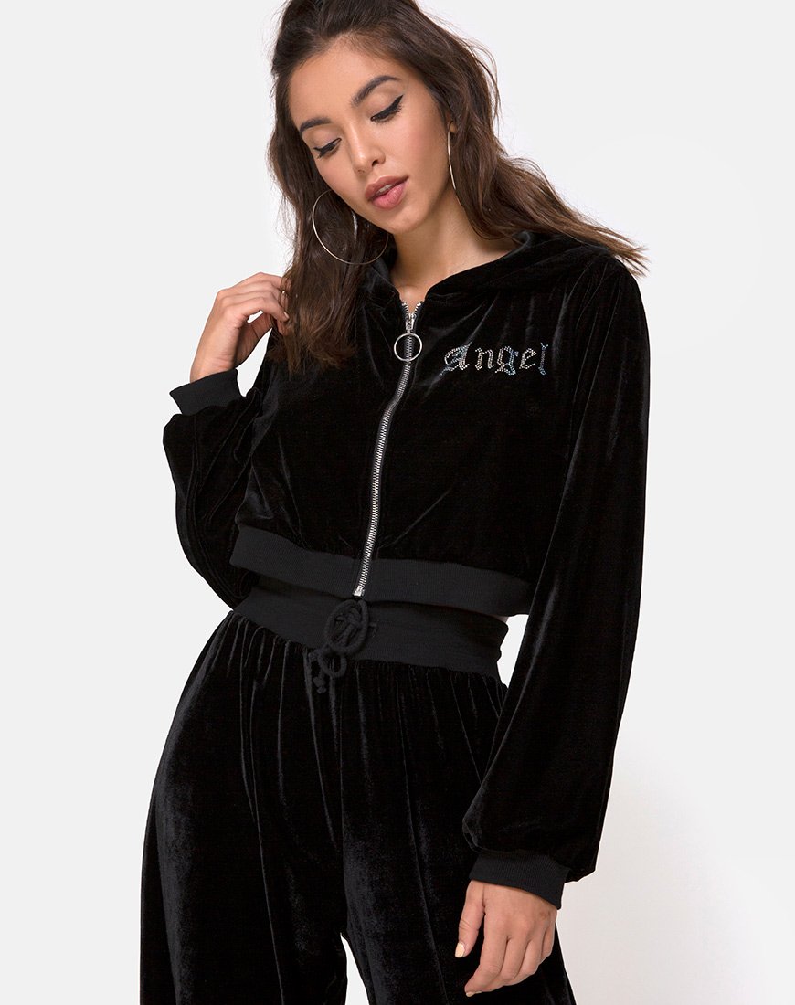 Bomb Hoodie in Black with Angel Diamante Hot Fix
