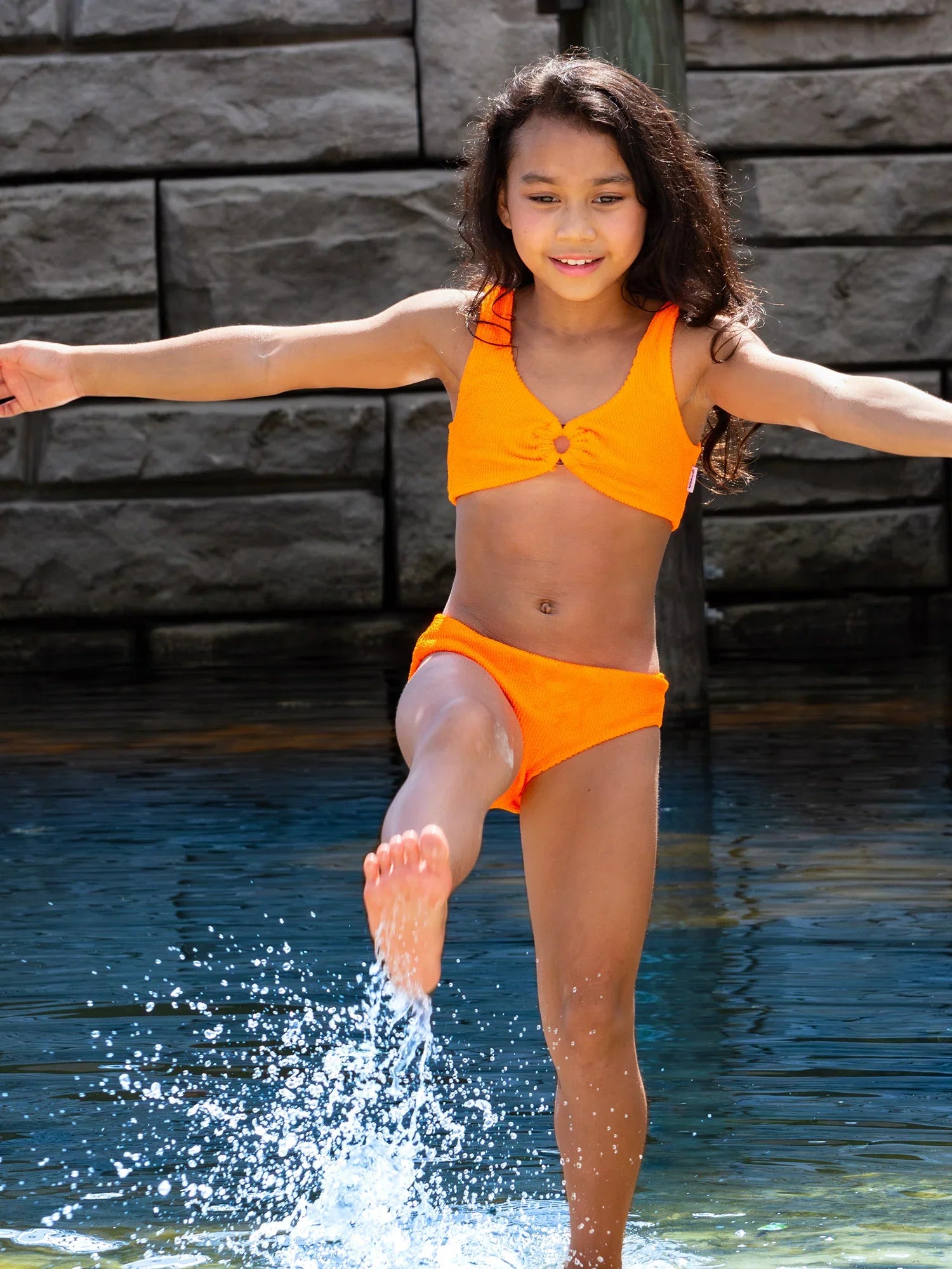 The Cinzia suit is our new bikini set. It features tortoiseshell hoop detailing with serving of understated glamour.