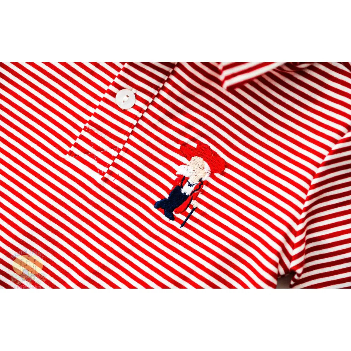 This vibrant red and white striped polo t-shirt is the ultimate game day attire for any fan! It features an expertly embroidered Colonel Reb on the chest, adding a touch of team spirit to your look. Get ready to cheer on your team in style with this must-have polo!