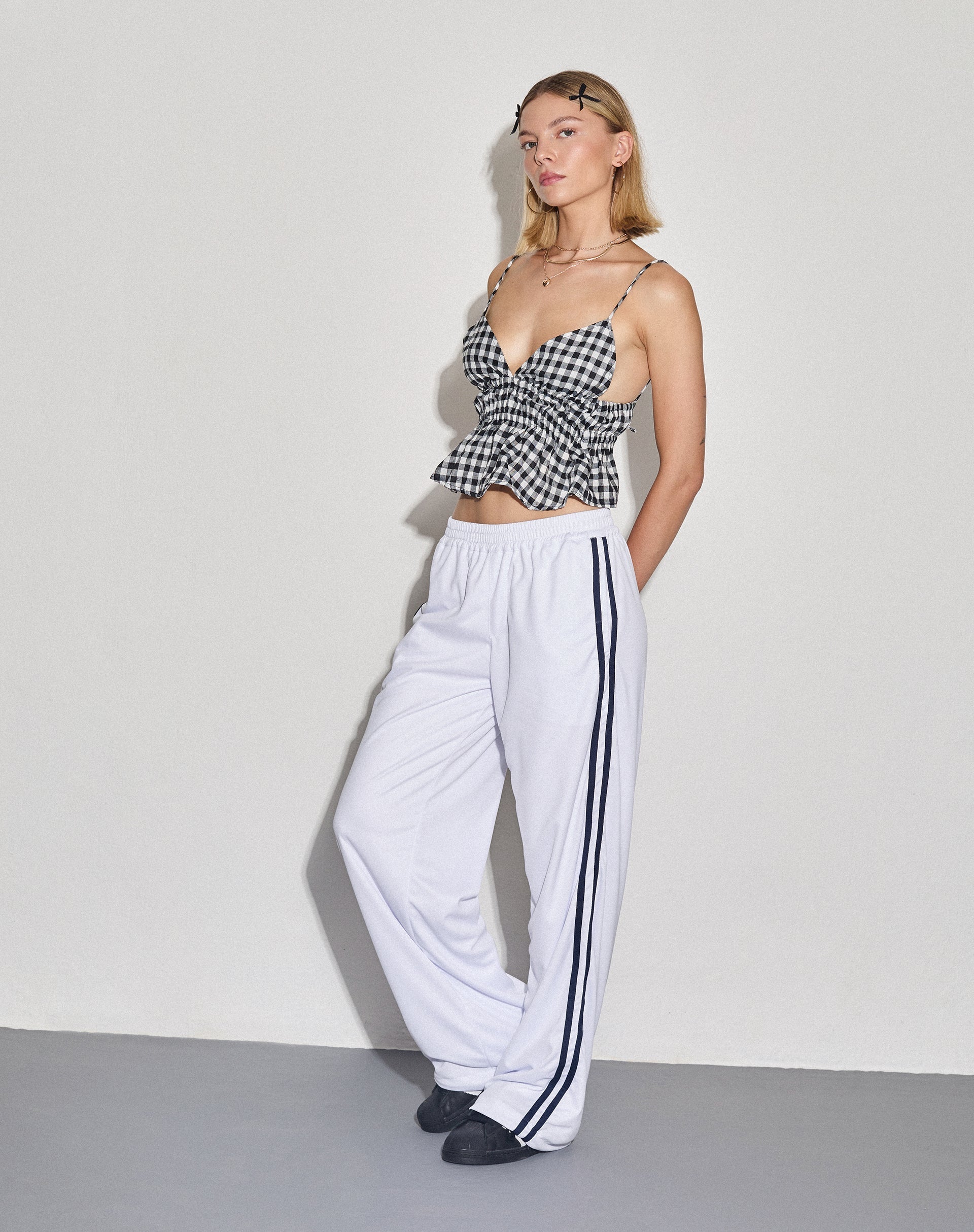 Coze Wide Leg Jogger in White with Navy Double Stripe