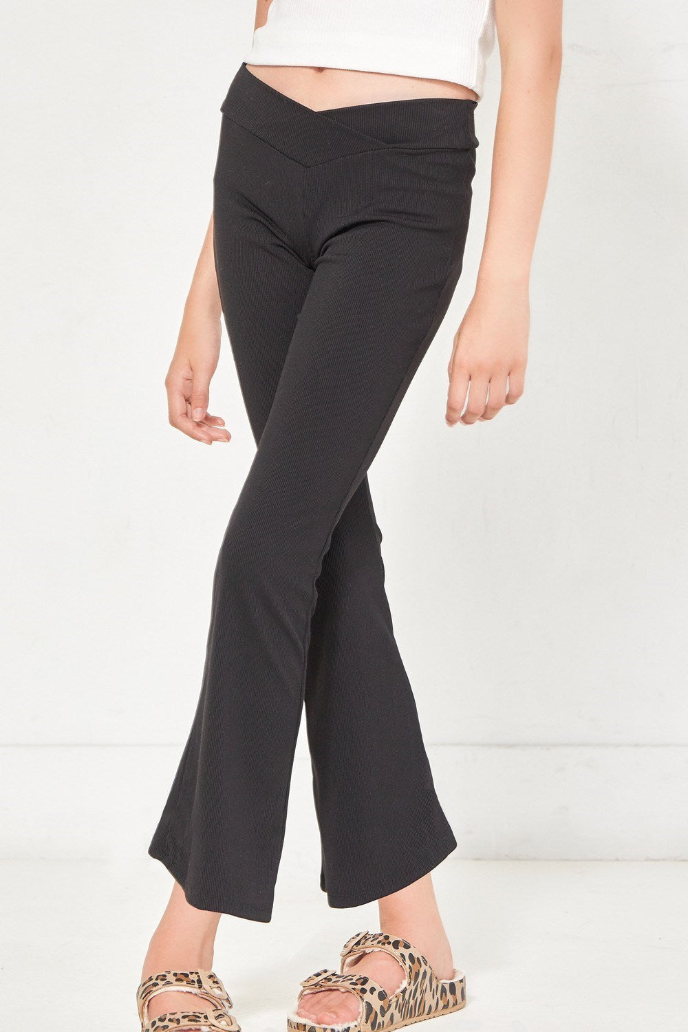 Crossover Waist Ribbed Flare Pant, Black