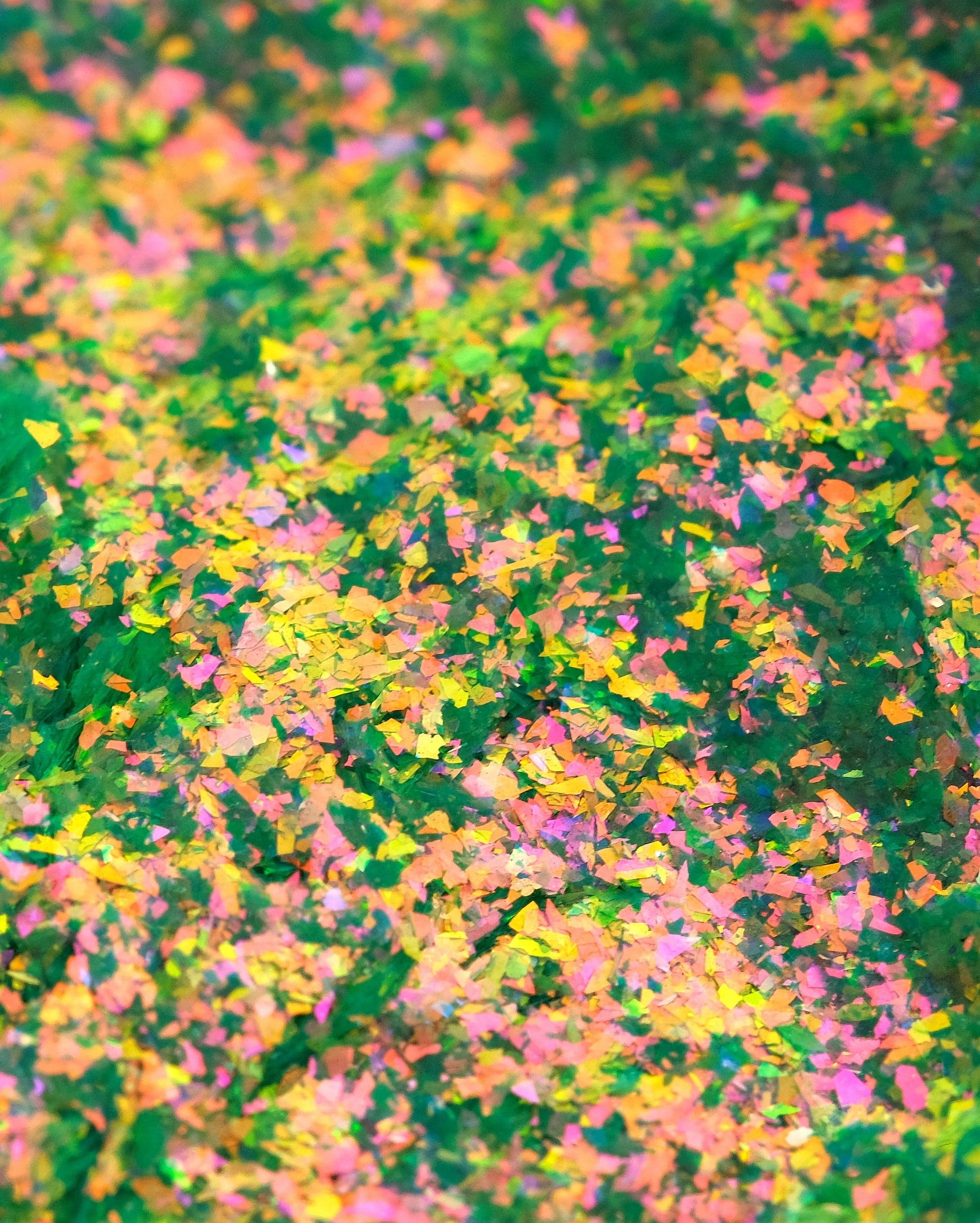 Packed full of sparkly particles, this texture is looser and more sheer. It is buildable and can create a foiled effect.