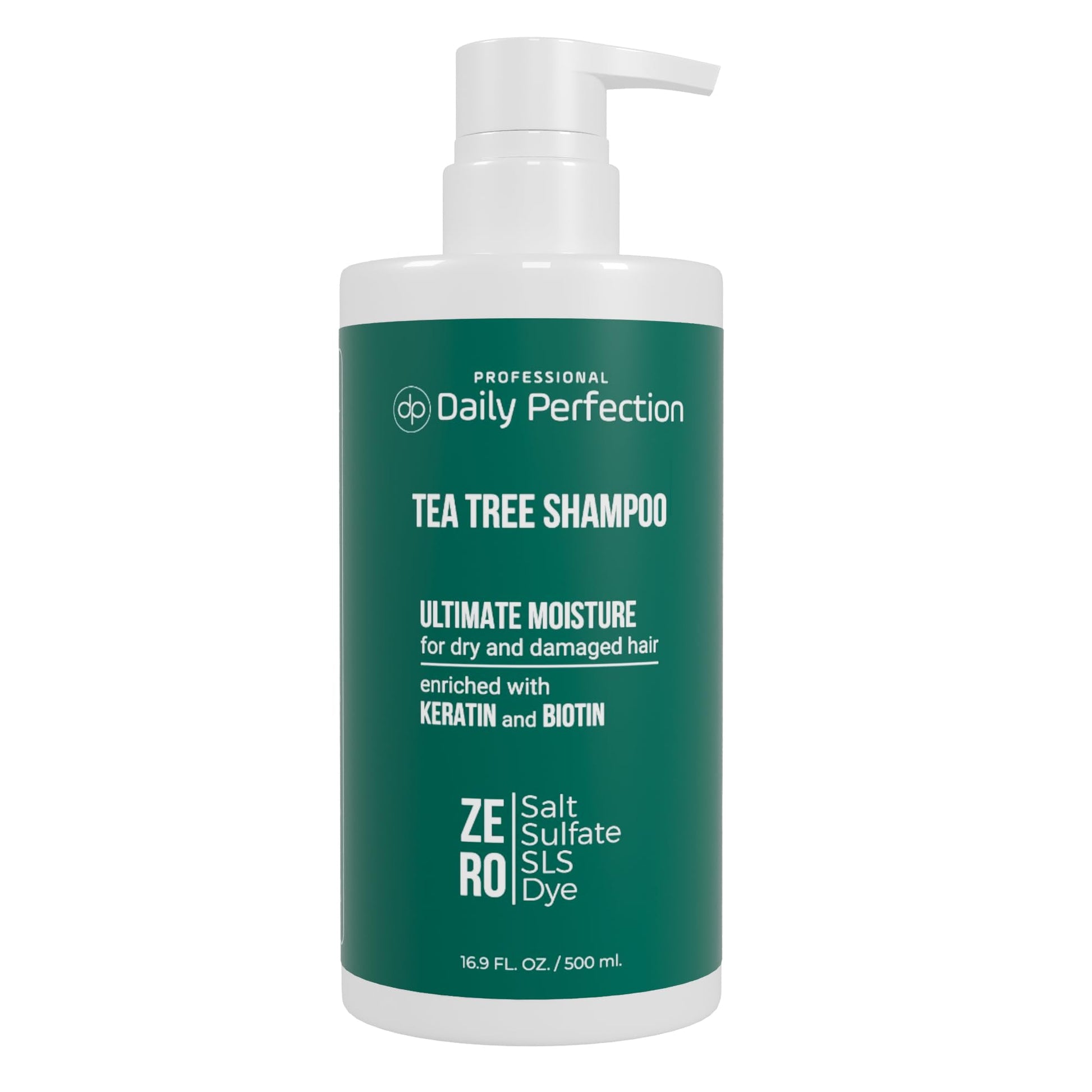 Daily Perfection Tea Tree Shampoo with Biotin and Keratin, Moisturizing and Hydrating for Dry Scalp and Hair, Salt-Free, Sulfate-Free, Paraben-Free Professional Series