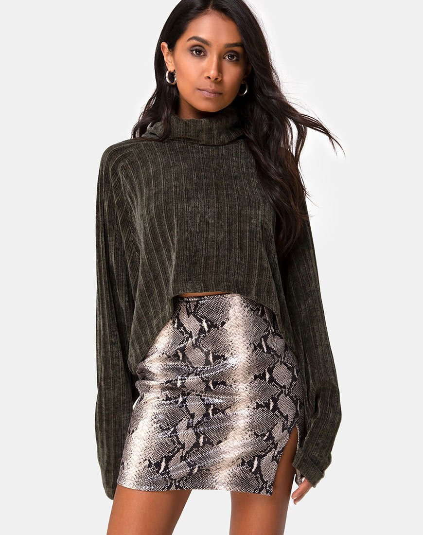Evie Cropped Sweater in Khaki Chenille