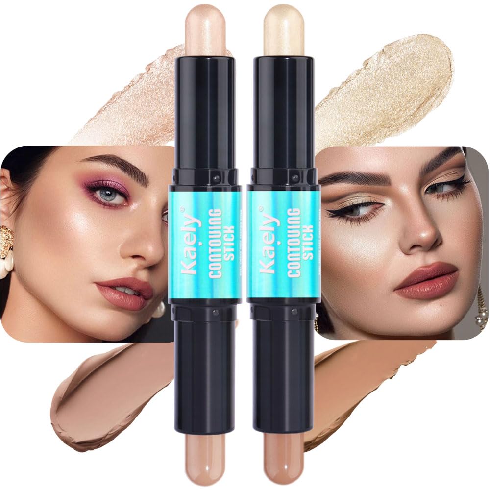 evpct 2in1 Face Shaping & Contouring Stick Cream Contour Concealer Bronzer Stick Makeup Kit for Beginner Face Highlighter Makeup Stick contorno maquillaje de maquillaje, NEW Fair + NEW Universal Light