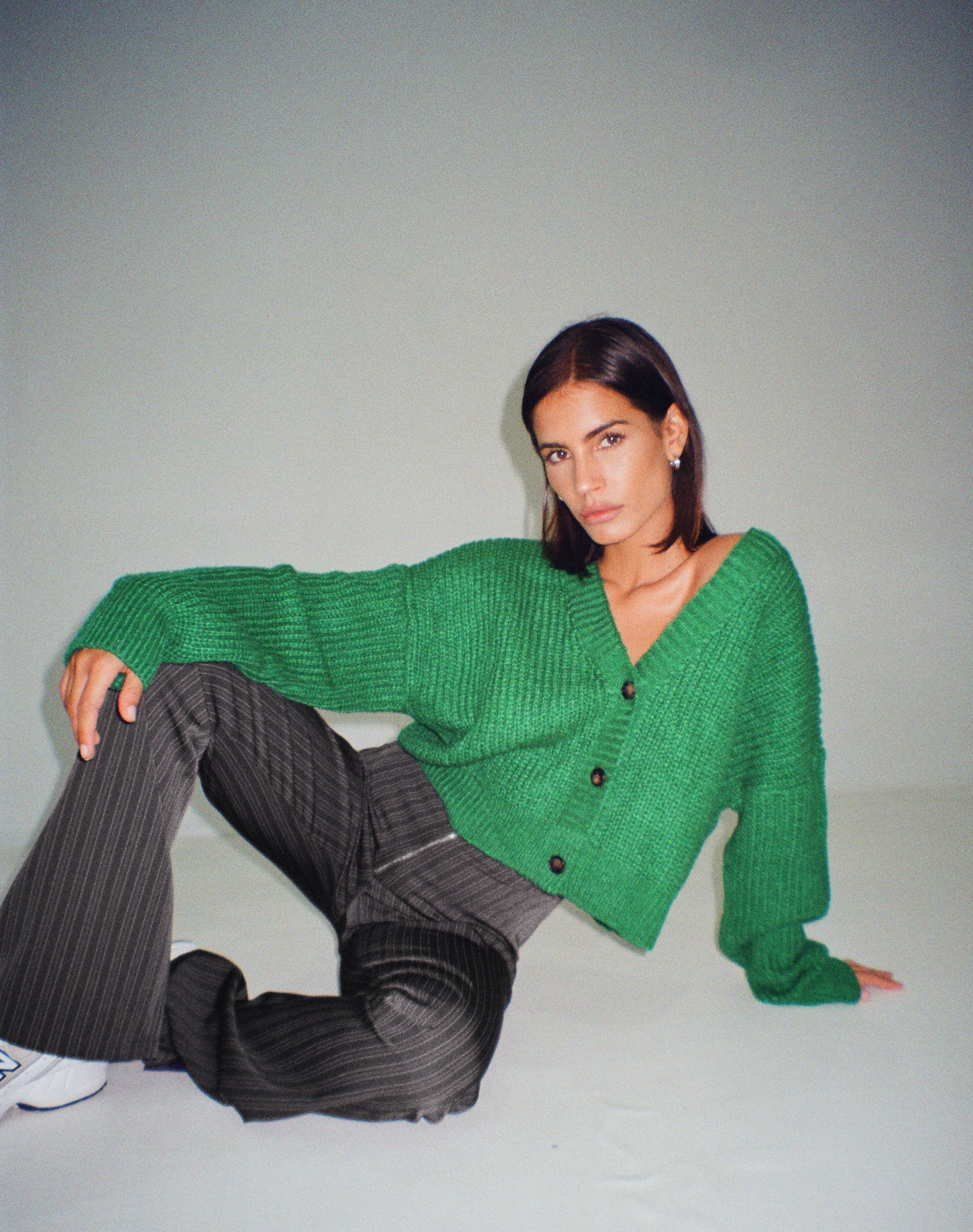 Keep your knits colourful with the Faya cardi. In a knit green, it features a loose fit, long sleeves with a button up front and v neckline. Throw it over your everyday looks.