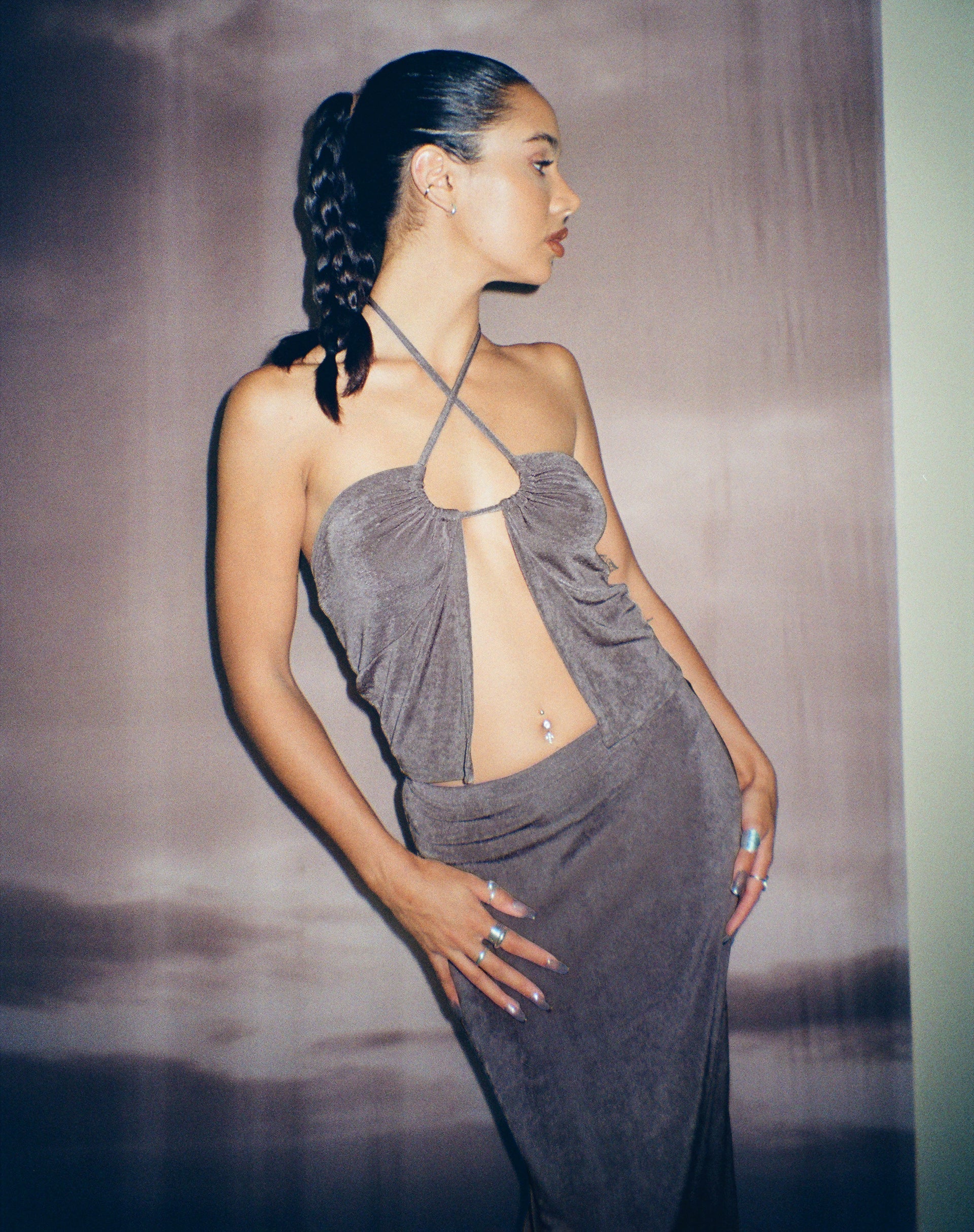 We are obsessing over Hiriko. Features include a strappy crossover halterneck, split hem at the front and crop fit. Complete the set with the matching Hadley skirt.