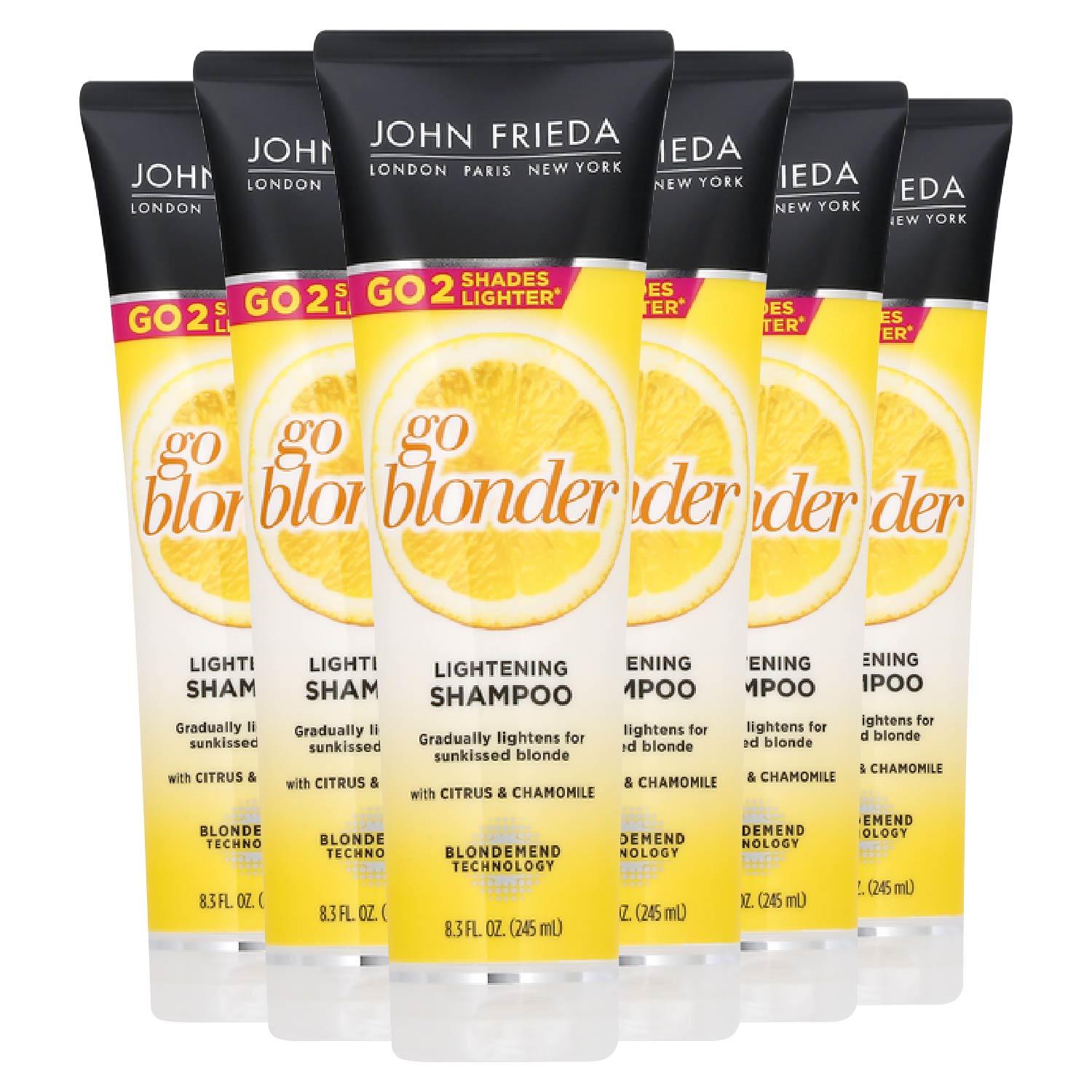 Enhance your blonde locks with John Frieda Sheer Blonde Go Blonder Shampoo. This 6-pack of 8.3 oz bottles gently lightens hair for a sun-kissed glow. Enjoy radiant, luminous locks with every wash.