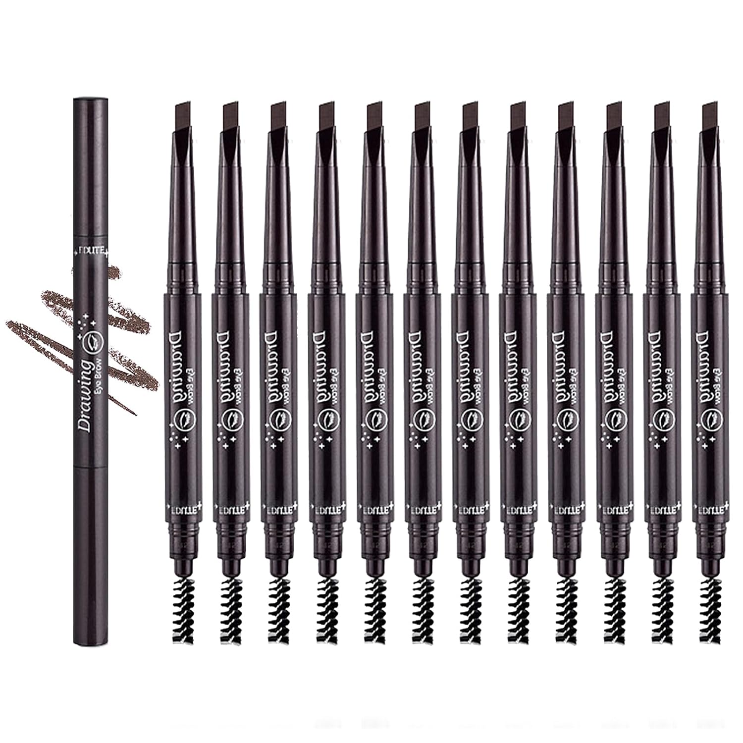 Jutqut 12PCS Medium Brown Eyebrow Pencil Eyeliner Set, Double Head Waterproof Eye Brow Pencil with Eyebrow Brush, Easy to Color, Long Lasting Eye Liner Pen for Women Professional Eye-Makeup