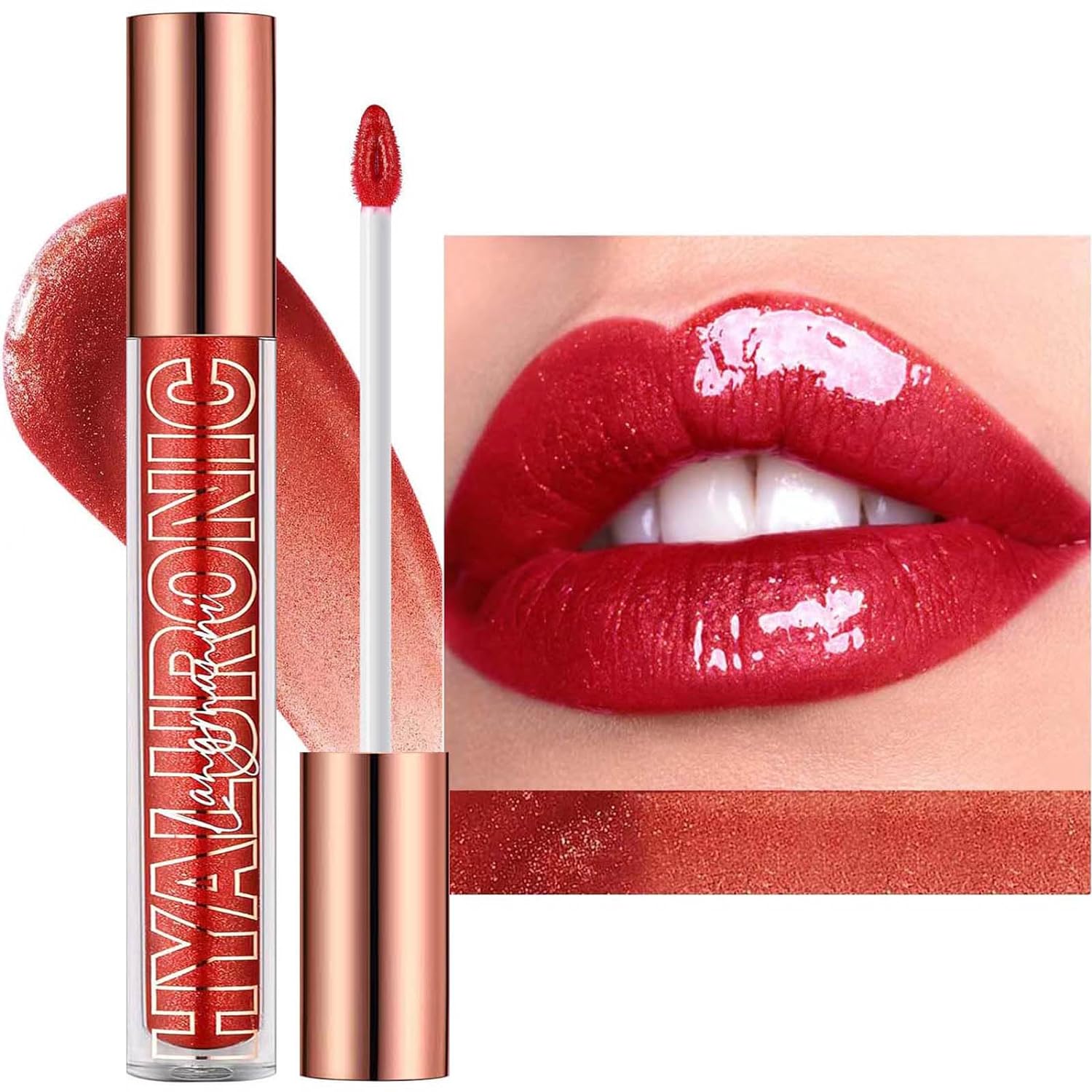 Maxzitank Cherry Red Lip Gloss Lip Plumper Gloss Tinted Glitter Lipgloss Lip Oil Teens Moisturizing High Shine And Vegan Plumping Lip Gloss For Women Girls Long-Lasting Dry Lip Care (06# Cherry Red)