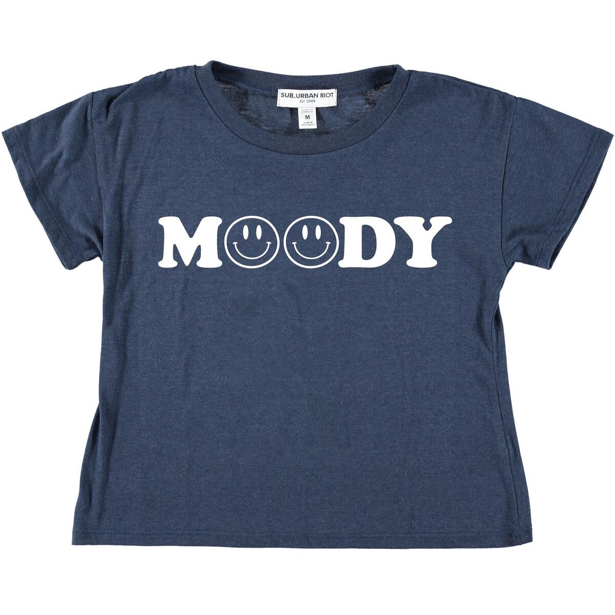 This stylish Moody SS Tshirt is made from soft cotton fabric and features a navy blue Moody graphic with smileys. Comfortably lightweight and breathable, this top is sure to make a statement with its fun and eye-catching design.