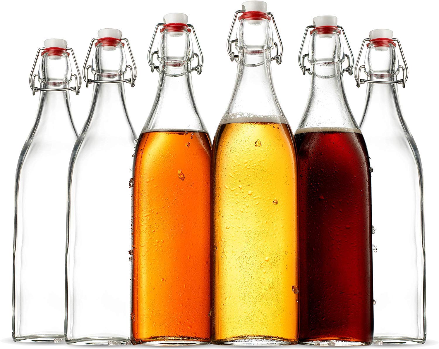 Swing-Top Clear Glass SQUARE Bottle With Airtight Stopper - 33.75 oz (4 Pack) Flip-Top Bottles Great for Oil and Vinegar, Beverages, Homemade Juices, Smoothies, (Not For Carbonated Beverages)