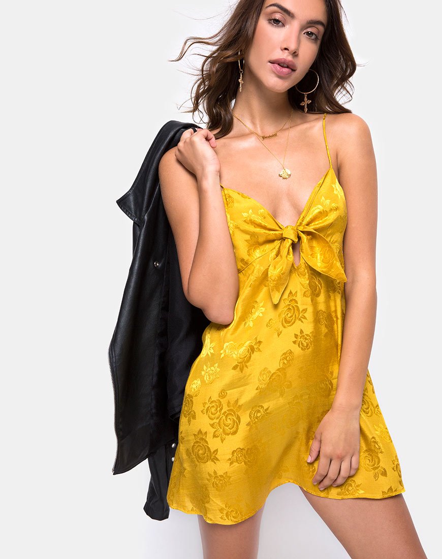 Roppan Slip Dress in Satin Mustard Rose