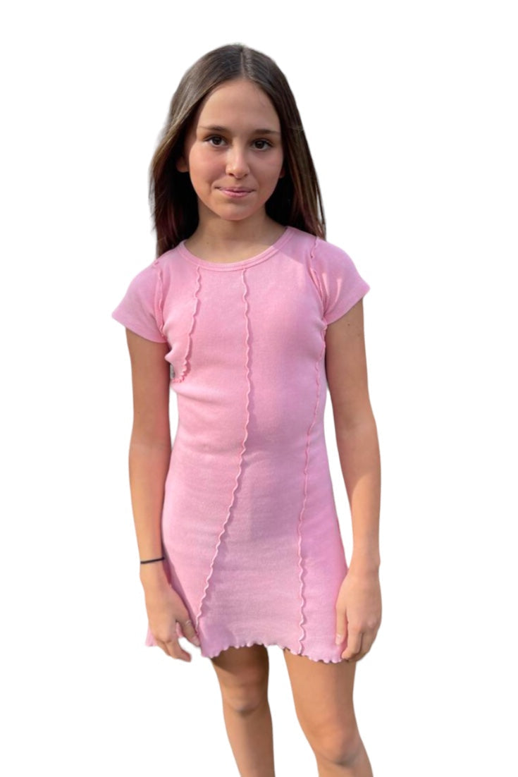 Decrease quantity for Seamed Ribbed Acid Washed Dress, Pink