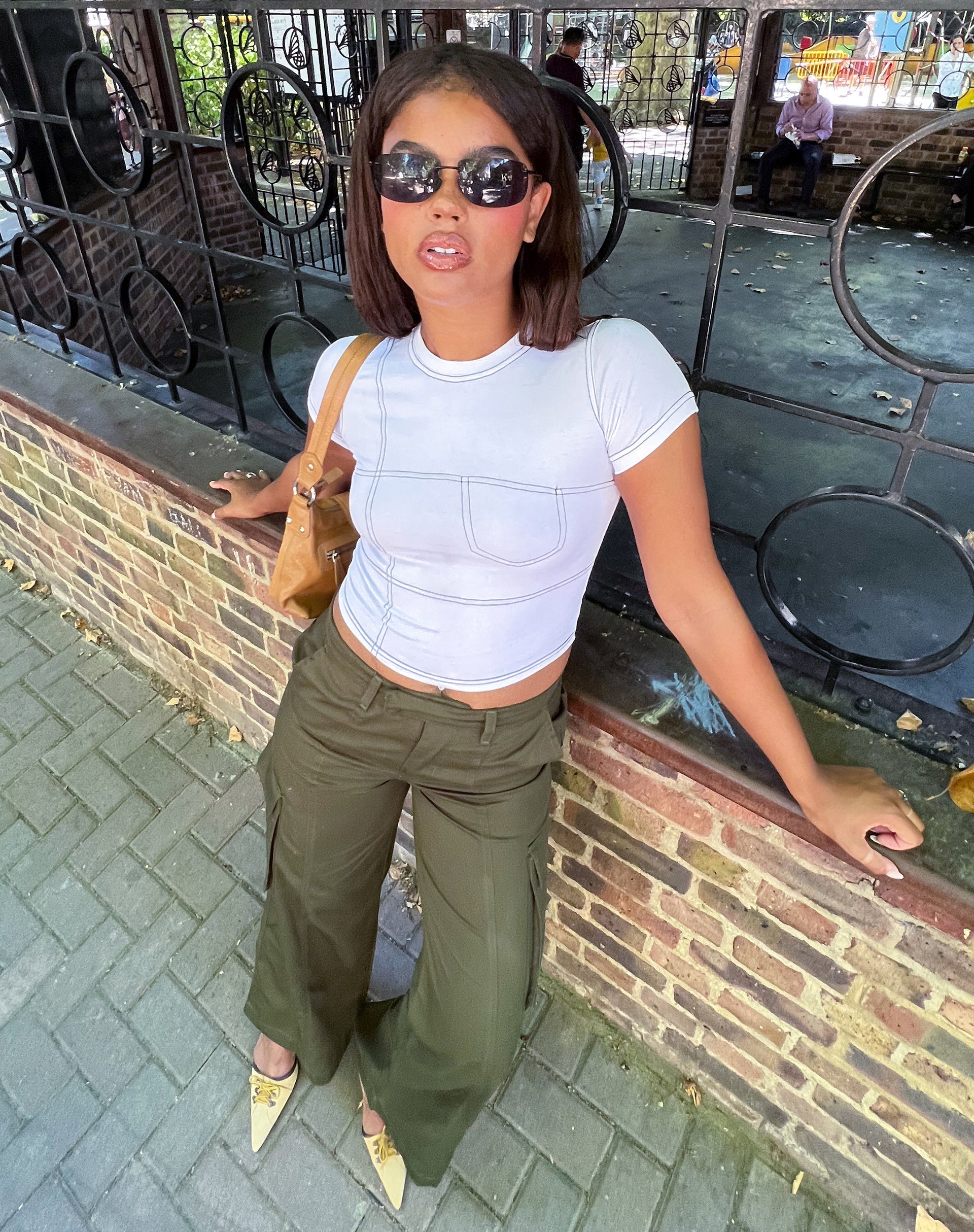 Y2K vibes with the Shyla top. This baby tee features a cropped fit, short sleeves with crew neckline in white with black stitching. Finish off the look with the Dipta skirt.