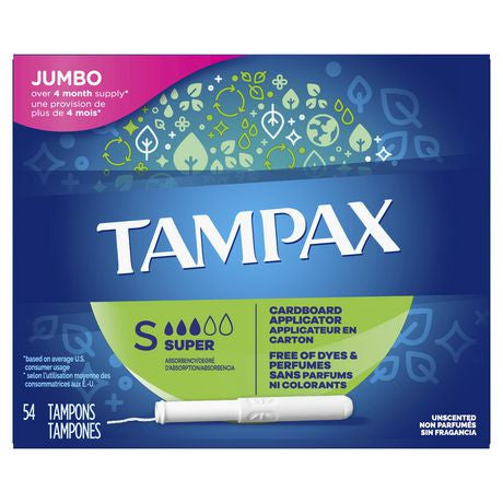 Tampax - Unscented Tampons with Cardboard Applicator - Jumbo Pack - Super Absorbency | 54 Tampons
