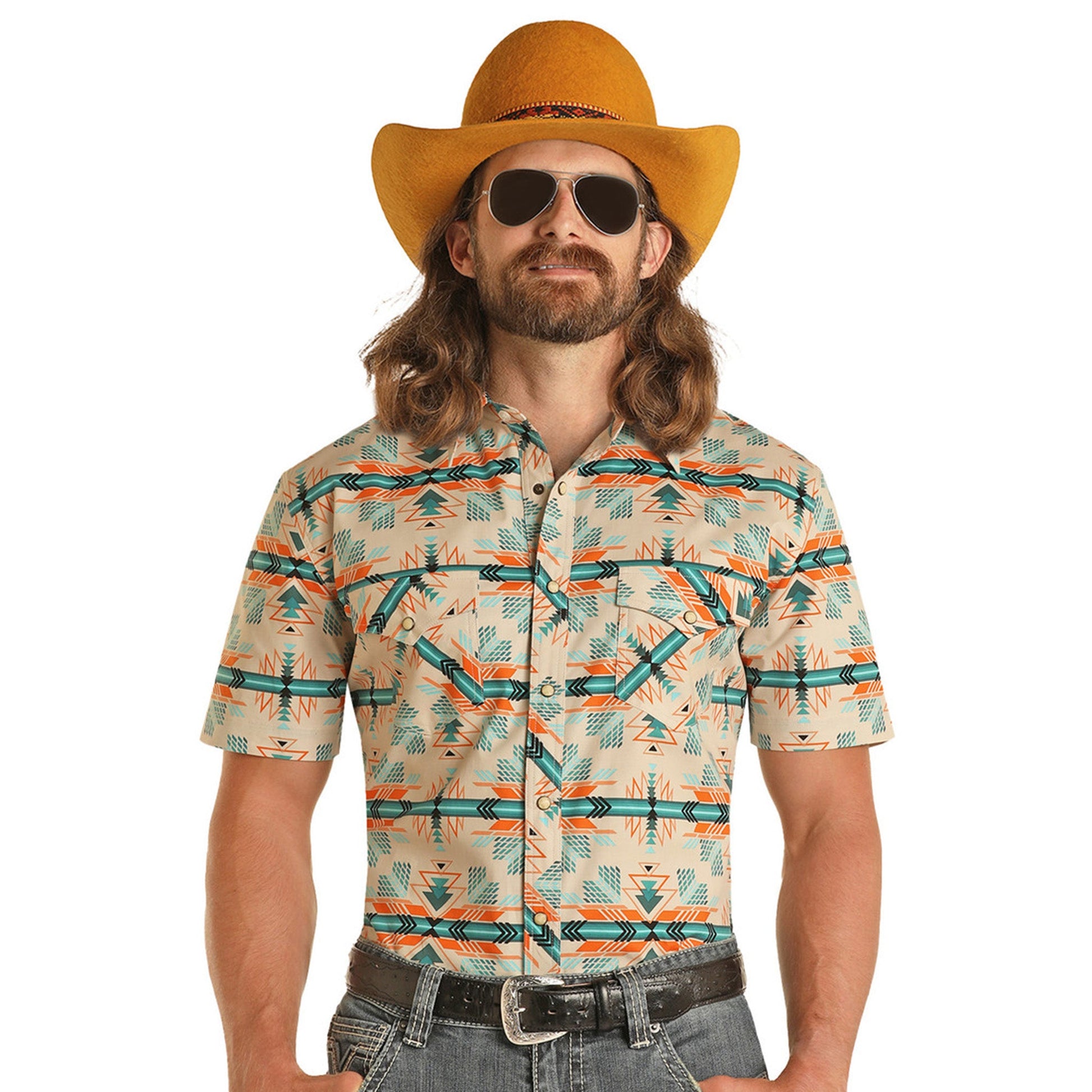 Dale Brisby Tan/Turquoise Southwest Short Sleeve