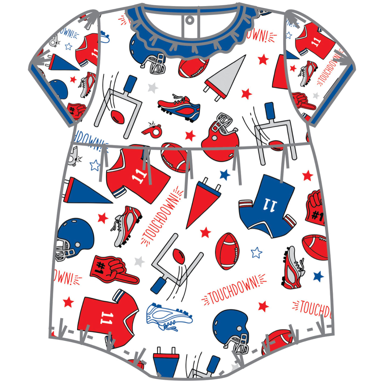 Touchdown Printed S/S Girl Bubble in Royal/Red
