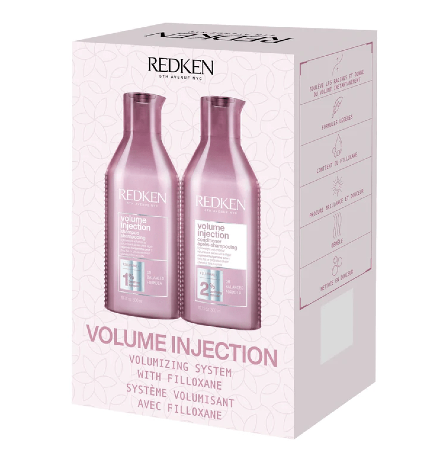 The Redken Volume Injection Spring Duo includes one bottle of Redken Volume Injection Shampoo (300ml) and one bottle of Redken Volume Injection Conditioner (300ml).