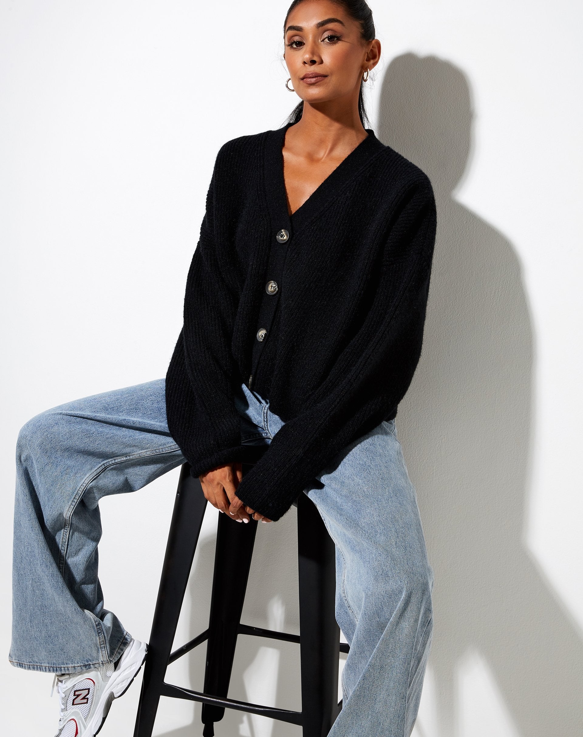 Cool but always cosy. Our Wallace cardi is the perfect knit you need for the new season. In a chunky knit black, it features an oversize fit with long sleeves, v neckline and button through front. Wear it as a top with the buttons done up, or layer it over a tee.