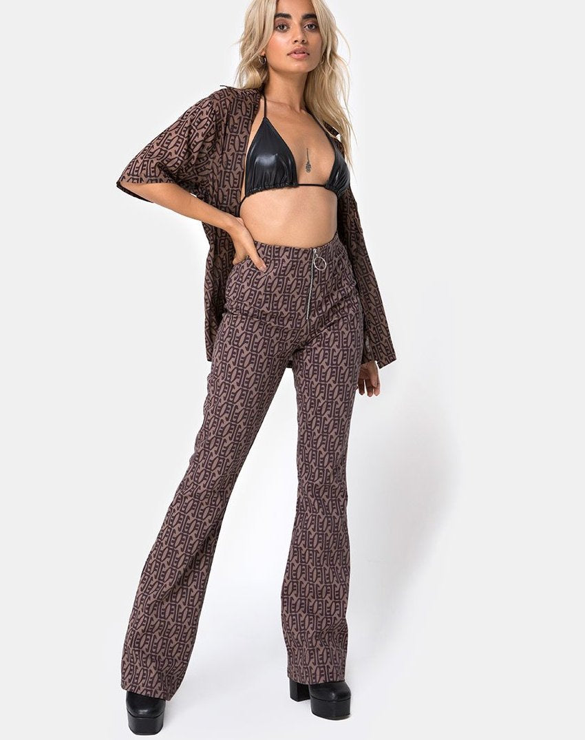 Take one of our fave prints into the colder months with the Zolipa trouser! Featuring a highwaist fit with a o-ring zip detail, the flared trousers are sure to be a hit! Pair with our matching Hawaiian shirt for that extra sass!